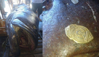 Ikan kerapu adalah salah satu jenis ikan konsumsi yang cukup populer. Biasanya, ikan yang akan kita konsumsi tidak besar dari telapak tangan. Tapi bukan berarti ikan yang satu ini tidak bisa tumbuh besar. Bahkan, di beberapa wilayah tertentu, ikan ini bisa berukuran raksasa dan sulit untuk ditangkap. Namun bukan berarti ikan kerapu raksasa tidak bisa dikalahkan oleh nelayan, salah satunya kerapu yang satu ini. Siapa sangka, jika seorang nelayan berhasil menangkap seekor kerapu yang sangat besar dari ukurannya. Bahkan usai ditimbang, beratnya mencapai 200 kilogram. Dan ikan ini diduga telah menelan manusia saat nelayan membelah perutnya. Saat penduduk setempat memotongnya, mereka dibat terkejut karena menemukan lencana penjaga keamanan di dalamnya.